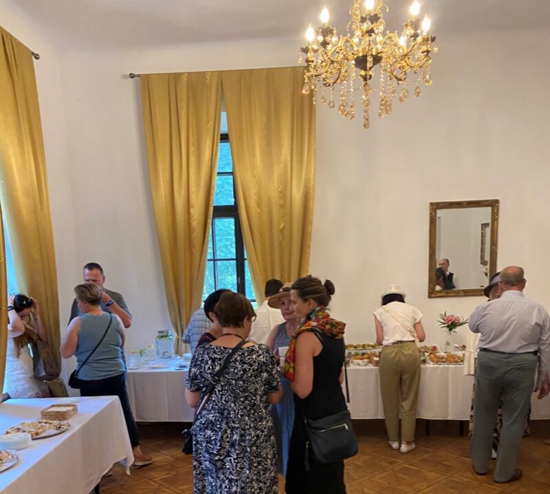 Od godziny17.30, tuż po koncercie, mieliśmy przyjemność kosztowania smakołyków pałacowej kuchni przygotowanych przez zespół kucharzy i kelnerów pod kierownictwem Pani Beaty Muszyńskiej oraz porozmawiania z artystami – pianistami.